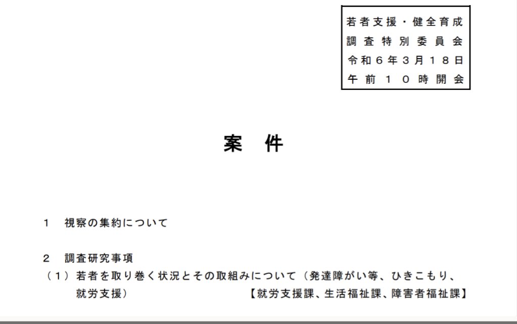 若者支援健全育成調査特別委員会では若者を取り巻く状況とその取り組みについて報告があり、質疑が行われました。