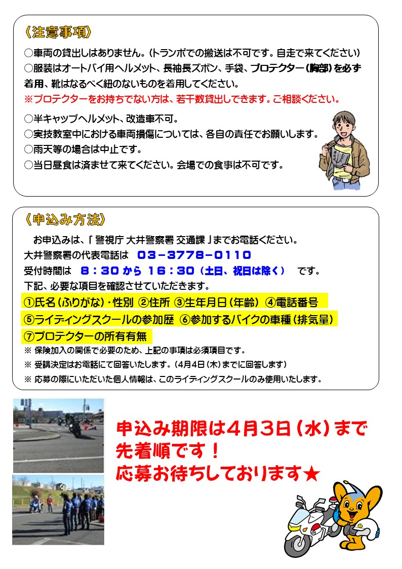 4月6日(土)大井警察署は『ライディングスクール&電動キックボード交通安全教室・試乗会』を開催します❗️
