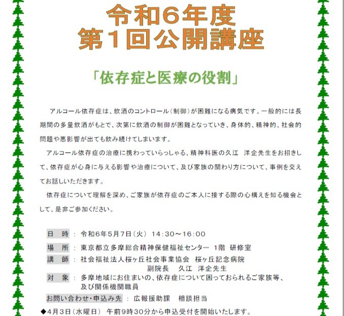 #依存症 者を抱えるご家族向け講座! アルコール依存症の専門医療機関である桜ヶ丘記念病院の医師から、依存症の基礎知識や医療機関での対応、家族の関わり方についてお話しいただきます!