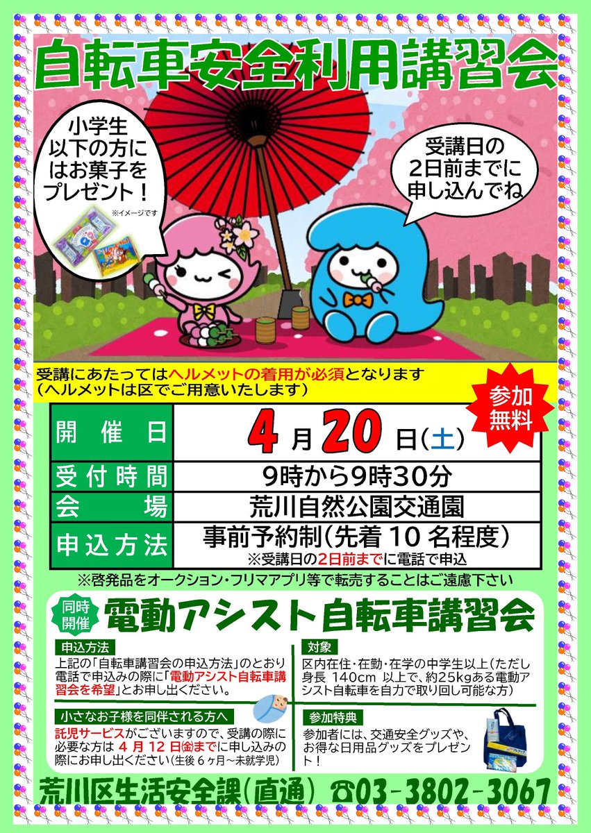 \2024年4月20日(土)[荒川区自転車安全利用講習会]申込受付中!/
