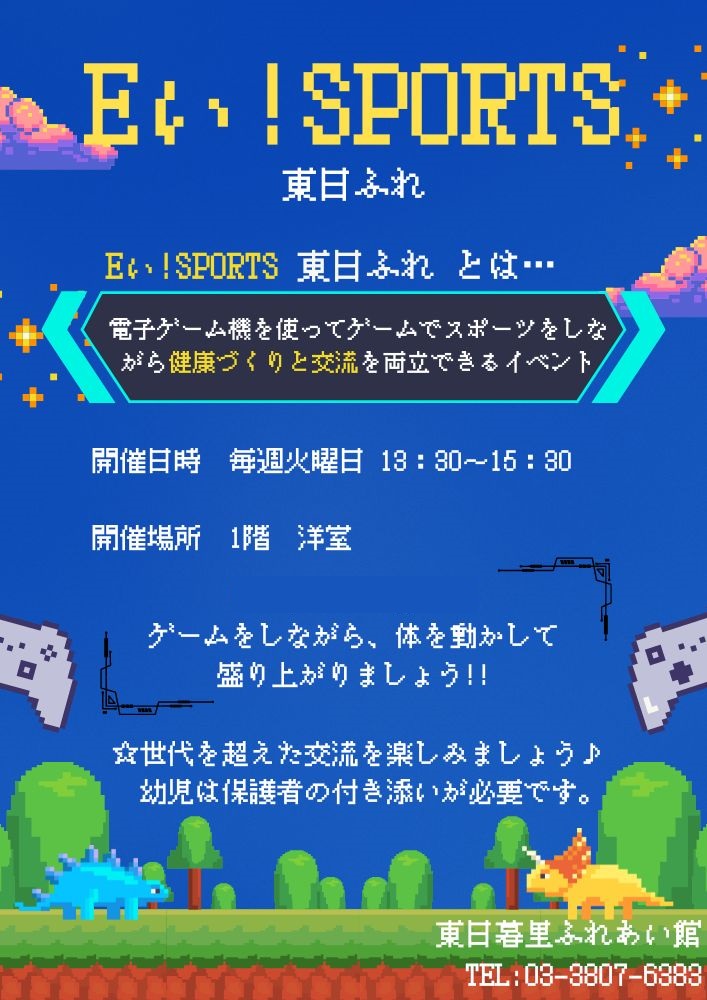 #東日暮里ふれあい館 では、毎週火曜日に「Eぃ!SPORTS 東日ふれ」を開催します。