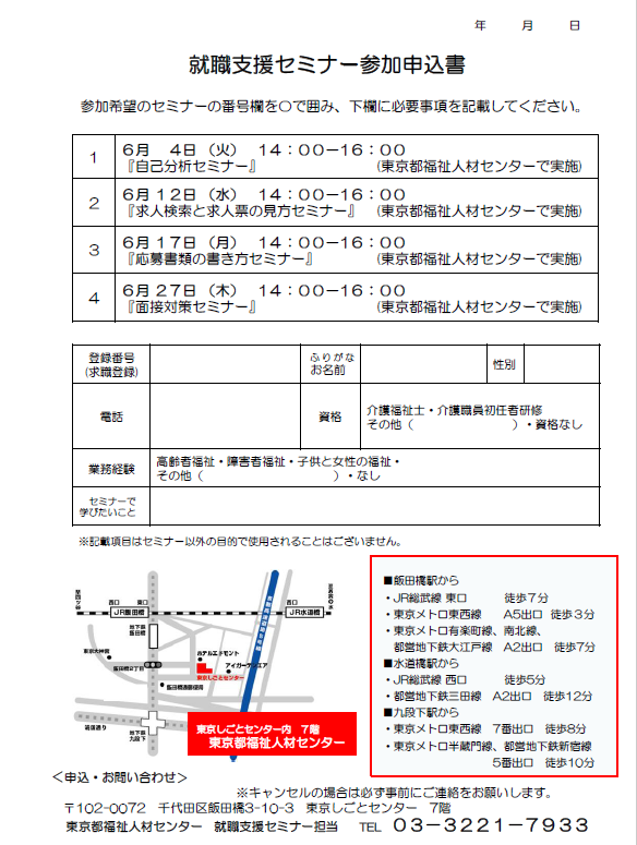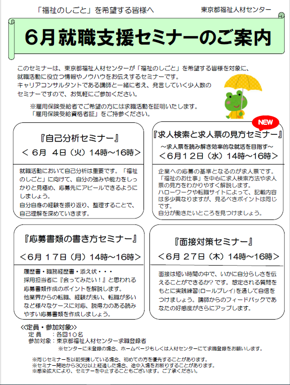 介護・福祉業界での就職希望者対象に、就職活動に役立つ情報やノウハウなどをお伝えするセミナーです。