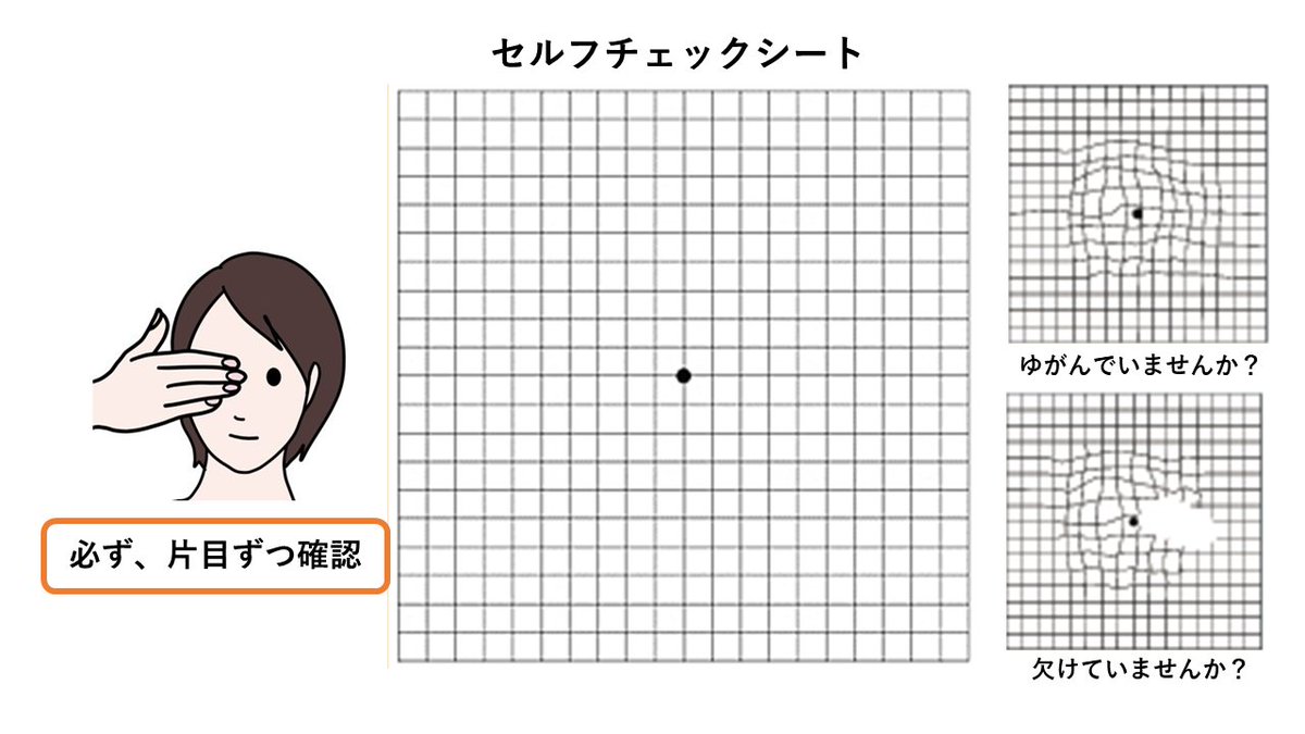 あなたの見ている世界、もしかして・・・ゆがんでいませんか?もしかすると「#加齢黄斑変性」かもしれません。セルフチェックをしてみましょう。「加齢黄斑変性」について詳しい解説はこちら▼https://tm..