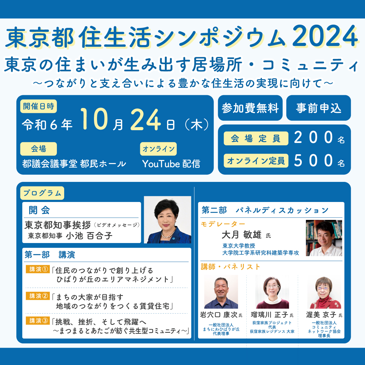 \東京都住生活シンポジウム2024/申込みの締切まであと2日10月24日(木)14時~16時30分都議会議事堂1階都民ホール(Youtubeでも配信)テーマは居場所・コミュニティです!皆様のご参加をお..