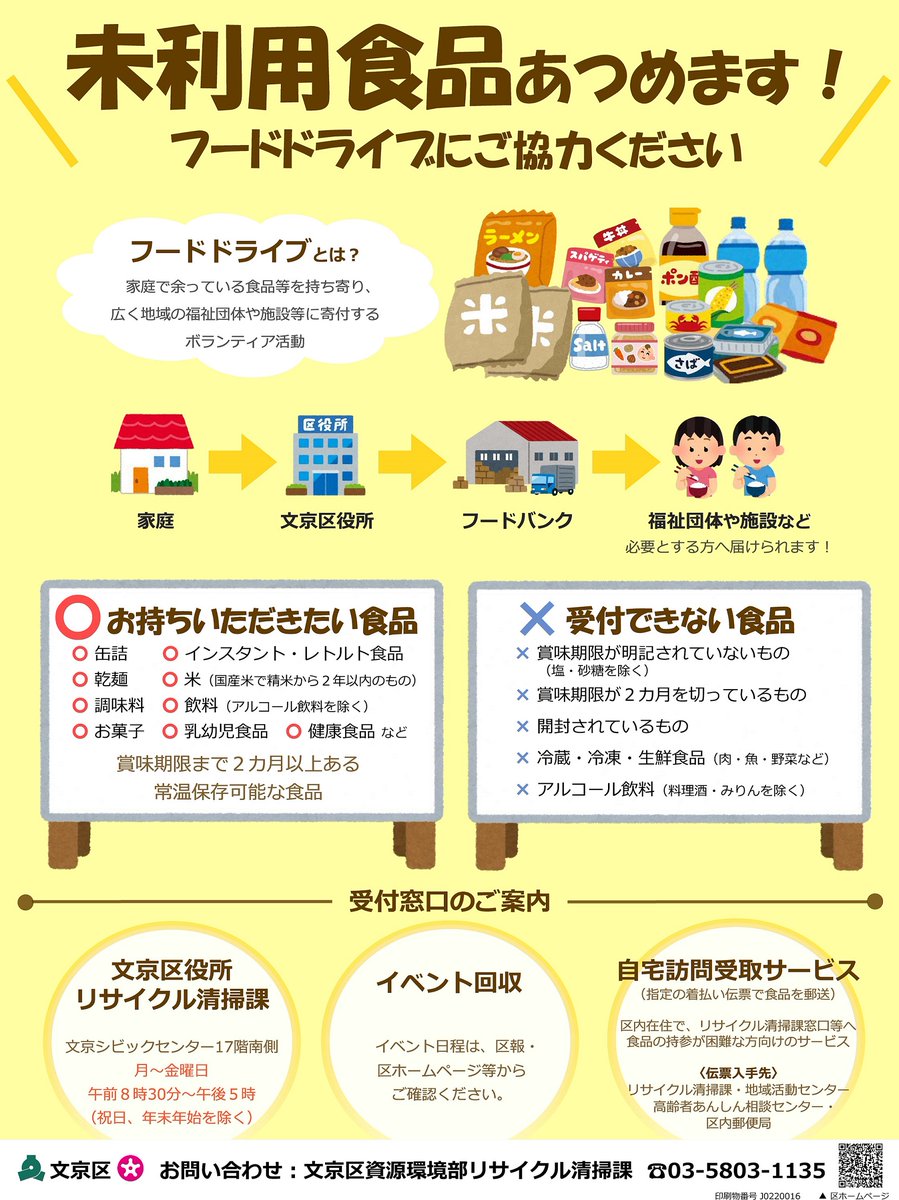 【お知らせ】5年1/19(木)10時~16時 音羽地域活動センターにて「フードドライブ出張回収臨時窓口」を開設します。普段区リサイクル清掃課窓口等で回収を行っているフードドライブをより身近な区内施設等にて行います。