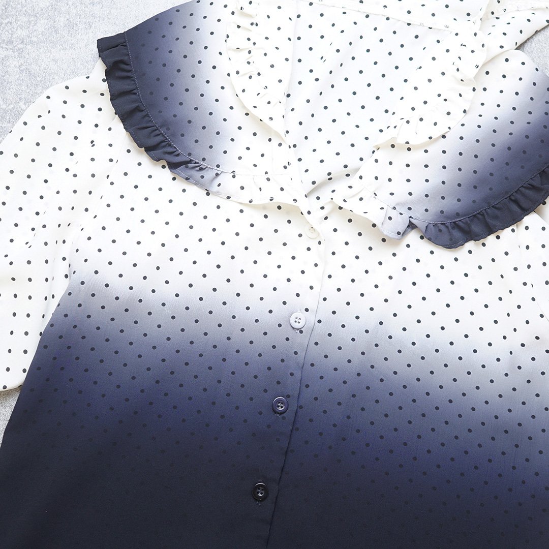 黒の染料でグラデーションをかけることで水玉模様が徐々に浮き出てくるような表現に。