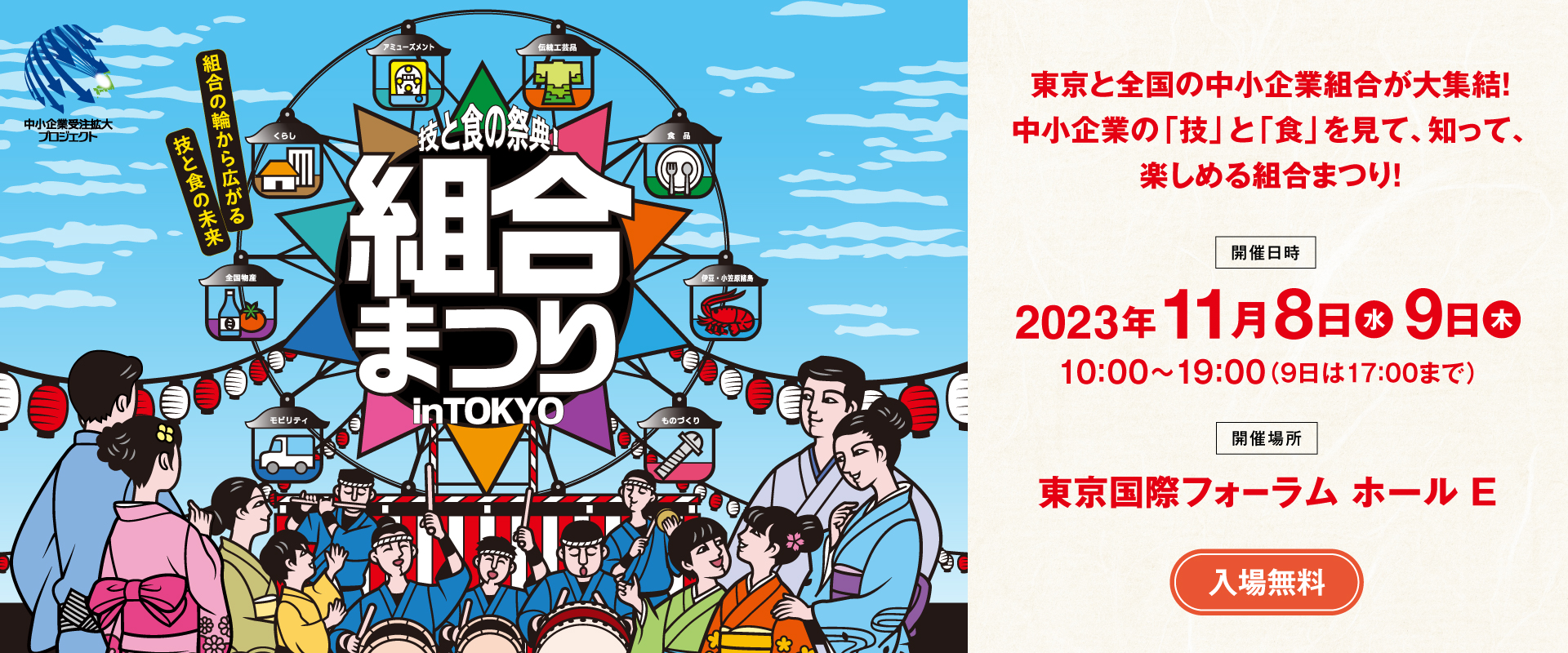 全国の中小企業の「技」や「食」を東京で体験できる「組合まつり in TOKYO ~技と食の祭典!~」を11月8日(水)~11月9日(木)に東京国際フォーラムホールEで開催!