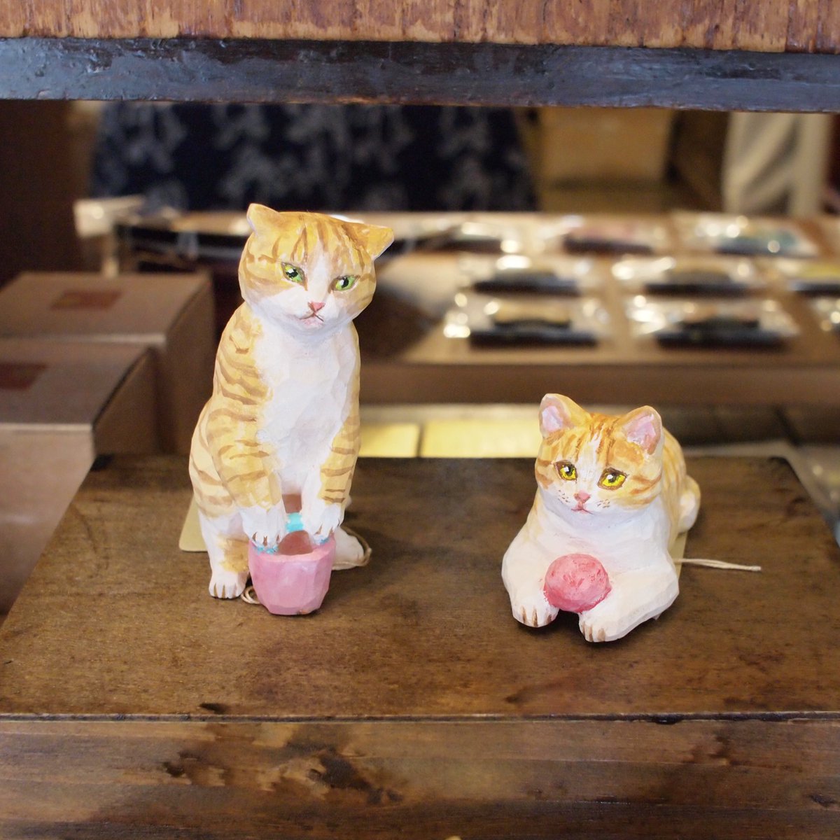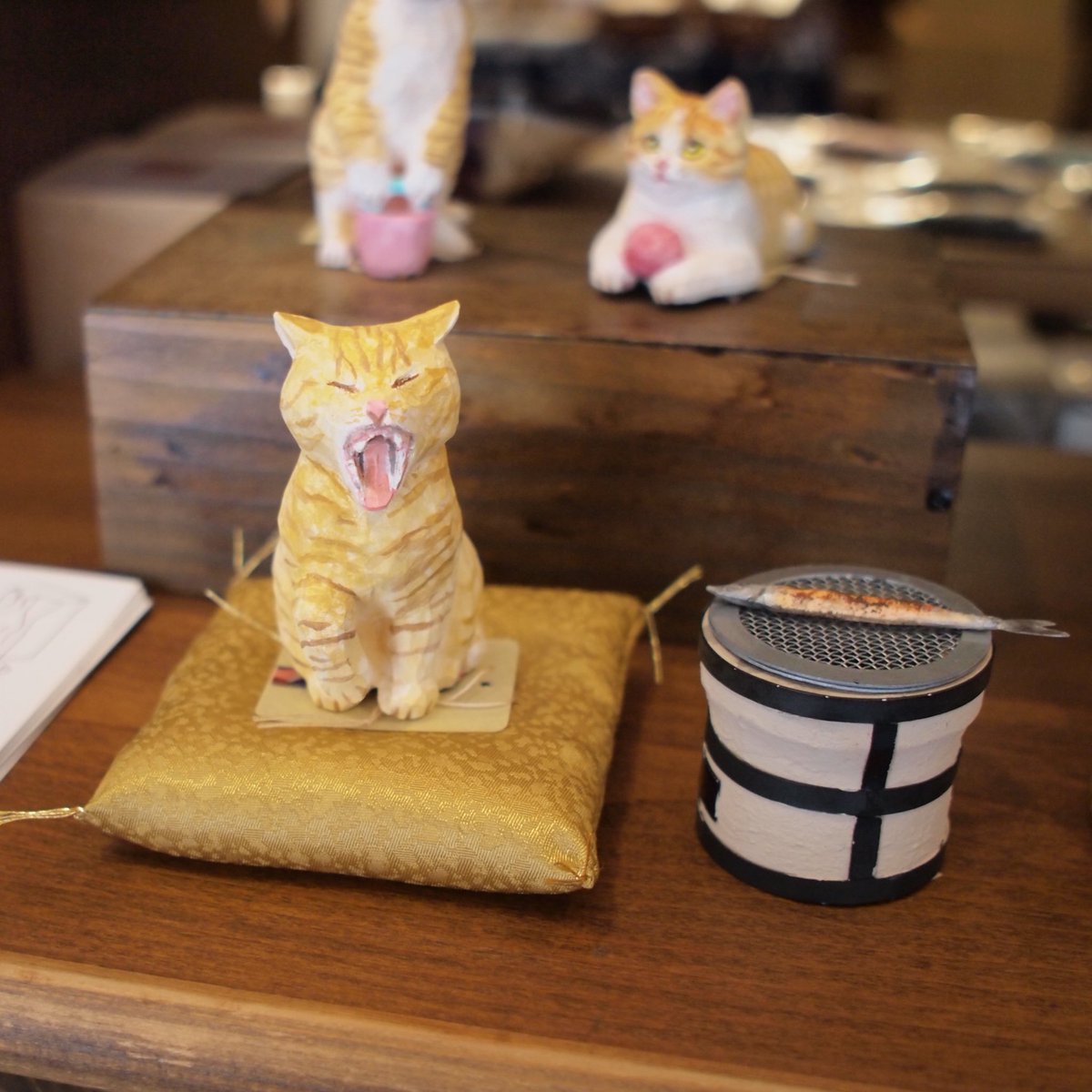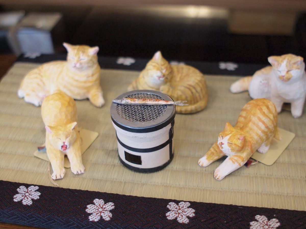 あたり工房の木彫りのねこたち。