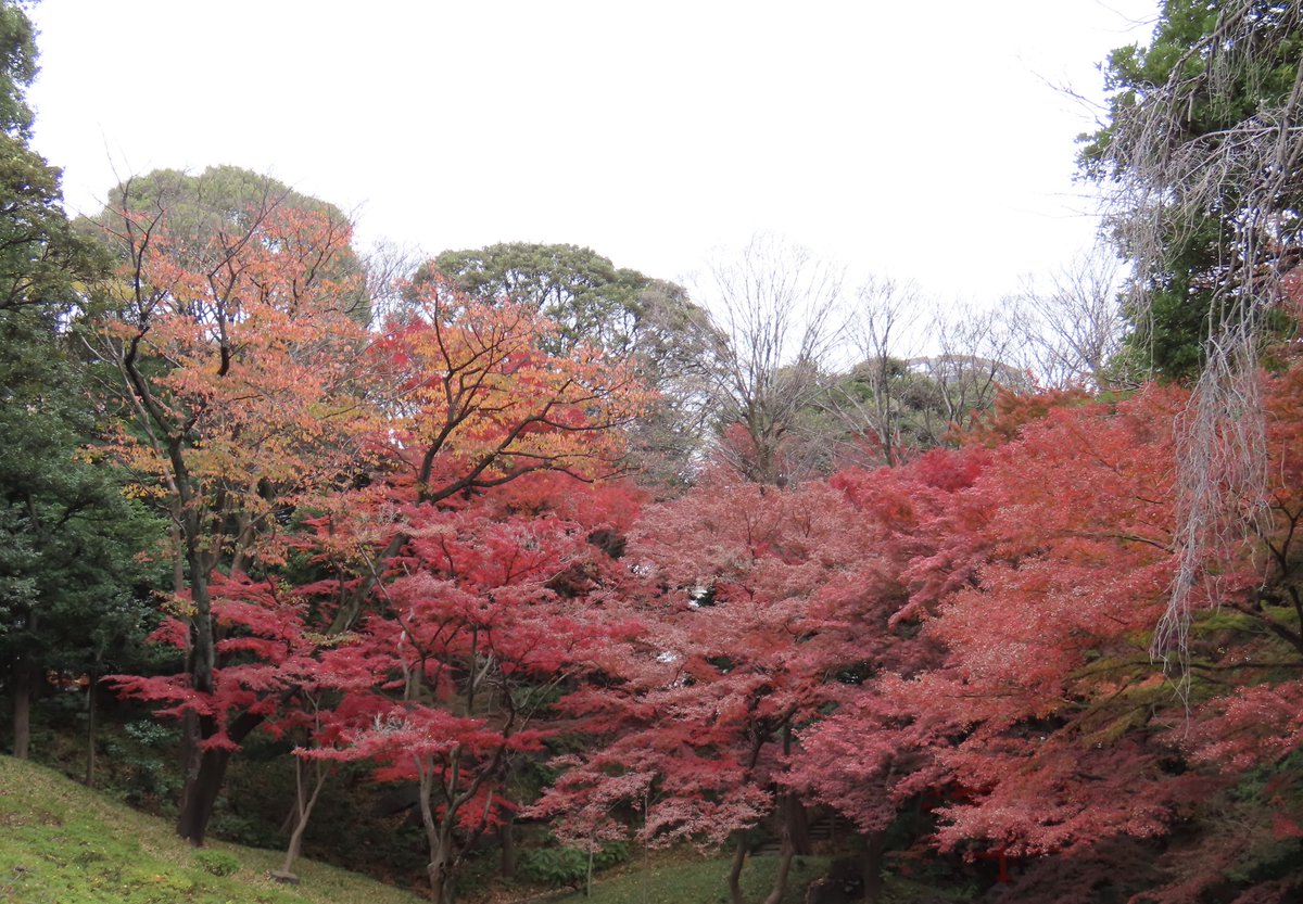 #紅葉 はまだまだ見頃です。オレンジめいた赤から深く紫がかった赤、緑葉と混じる黄、イチョウの黄、さまざまな色のヴァリエーションをお楽しみください。