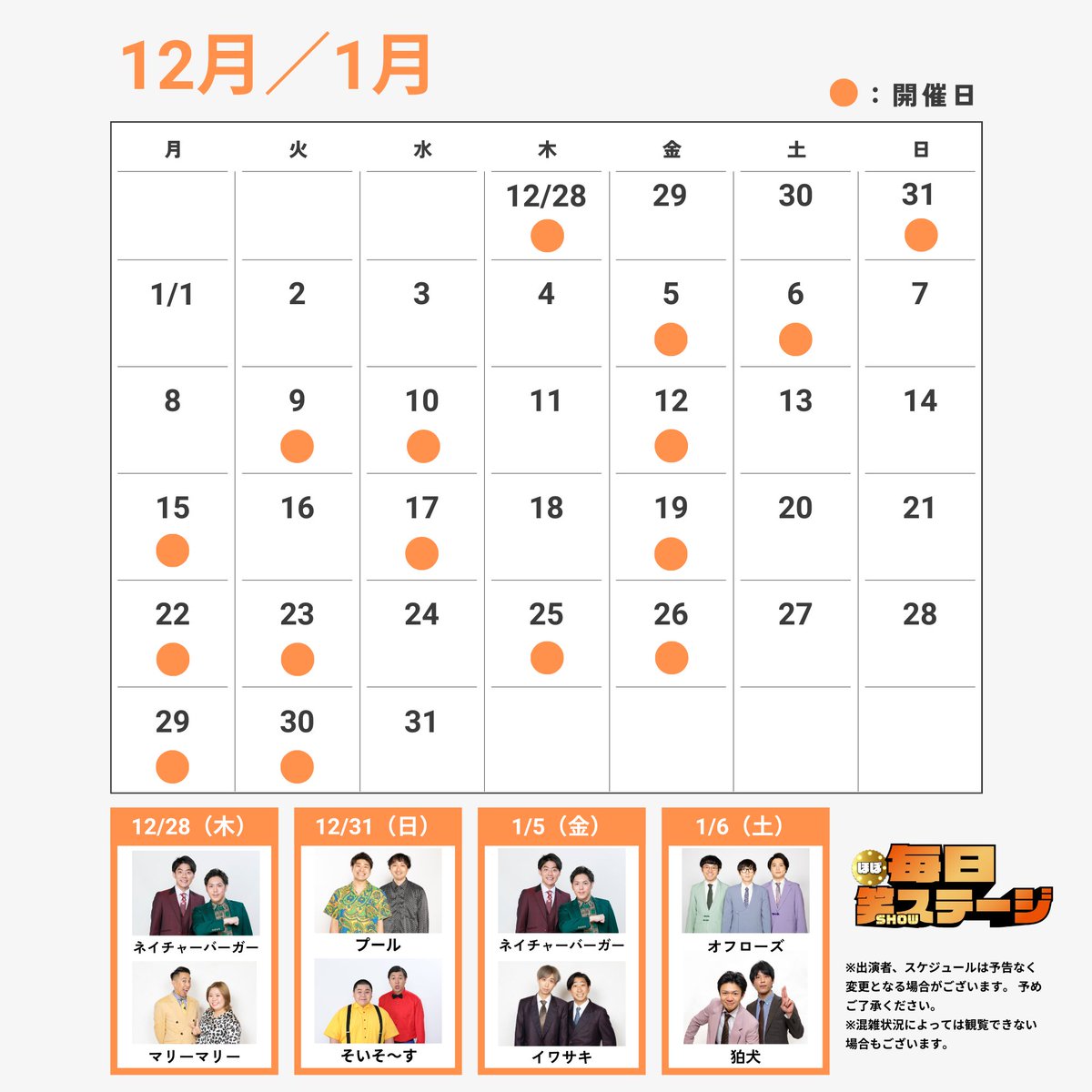 ▼12月29日(金)~1月6日(土)の出演者はこちら🎤✨