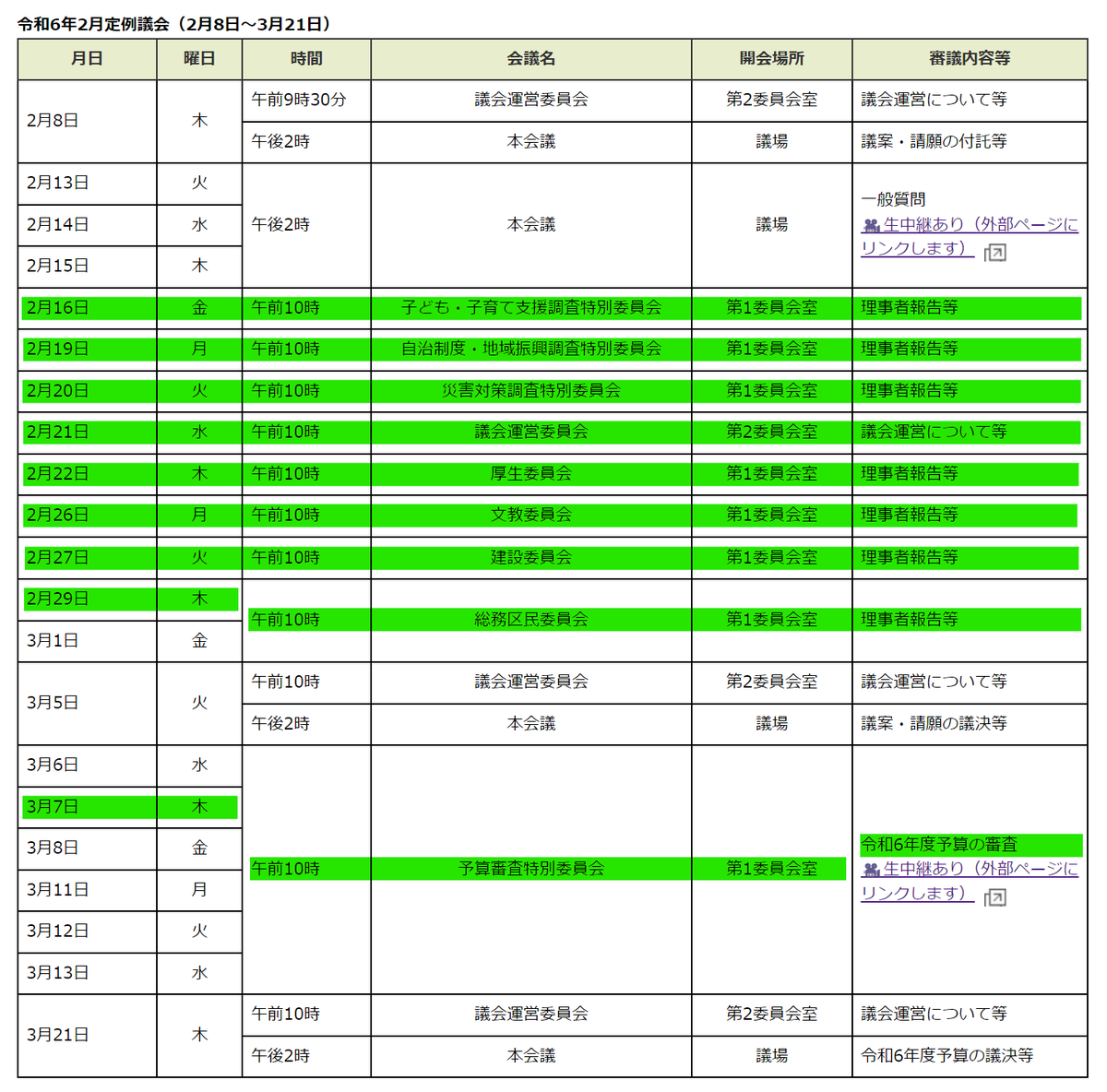 昨年ご好評をいただいた #議会ピクニック。次回は #予算審査特別委員会 を含む各委員会(2月16日~3月7日)で開催します(以下のマーク箇所)。