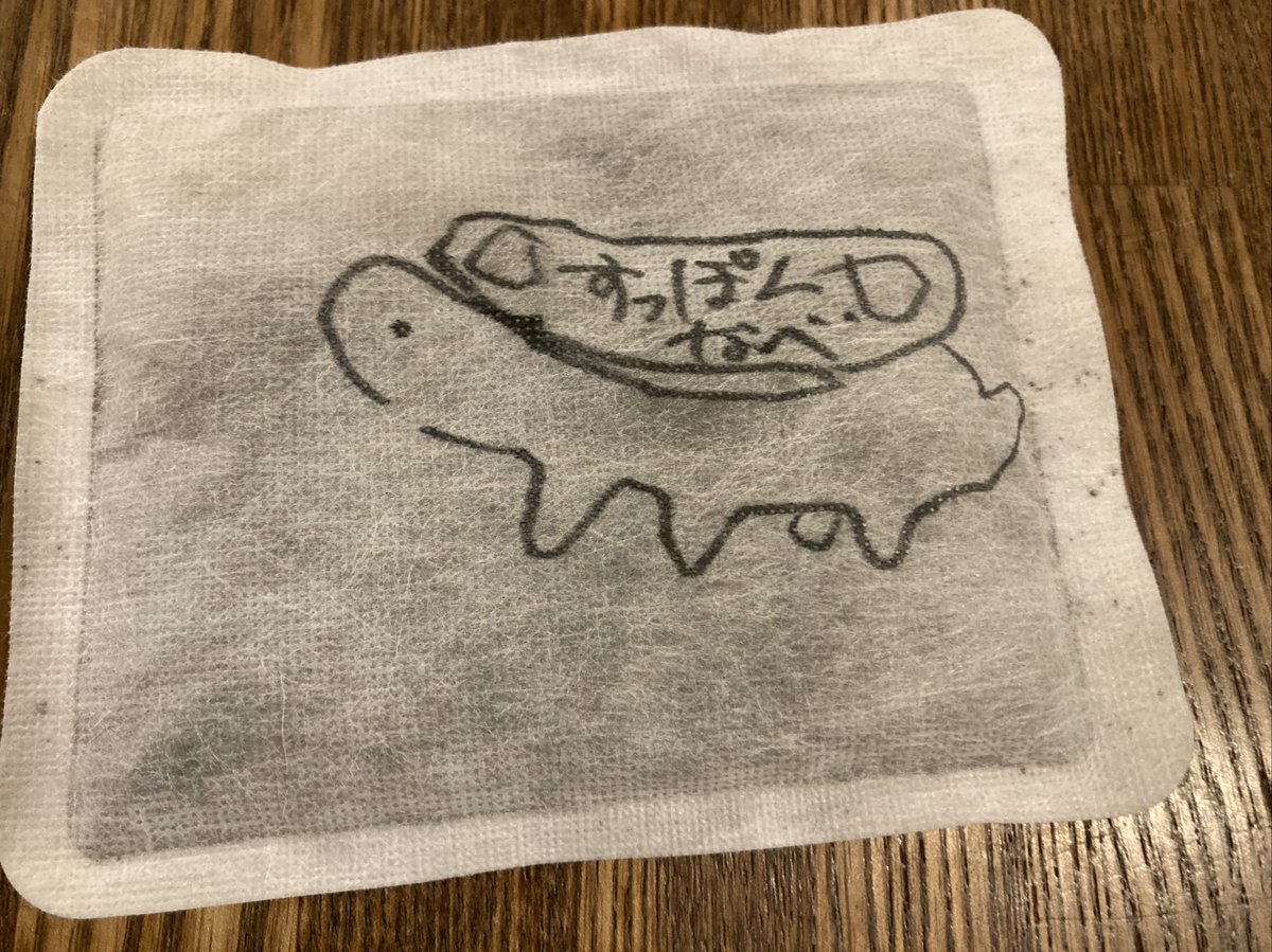 朝にホッカイロを持って店に出ると閉めるころにはラクガキされてます。鍋を背負うすっぽん。自分に責任を持つって大切ね。