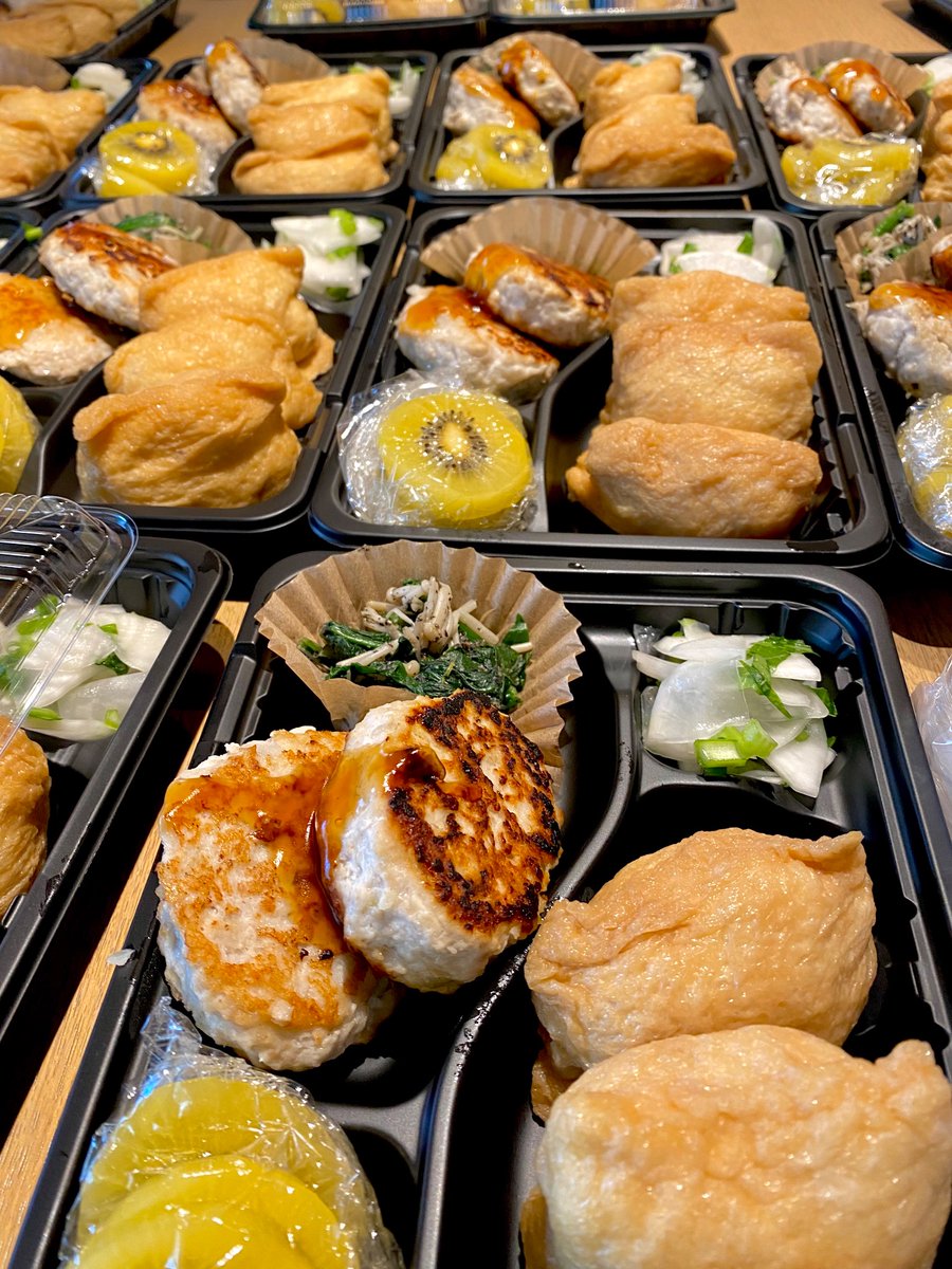 「ふたがしまらないー」と慌ててしまうほど、ボリューム満点のおいなりさんやつくねハンバーグ。