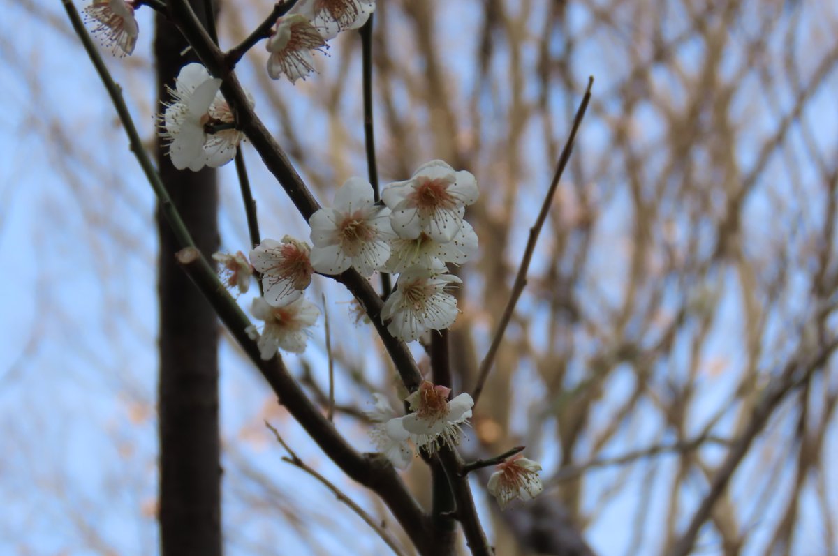 穏やかな陽気になりました。梅林のウメは早咲きも中咲きも盛りとなっています。# 織姫 はしとやかに、# 芳流閣 はしっかりと梅花をつけています。