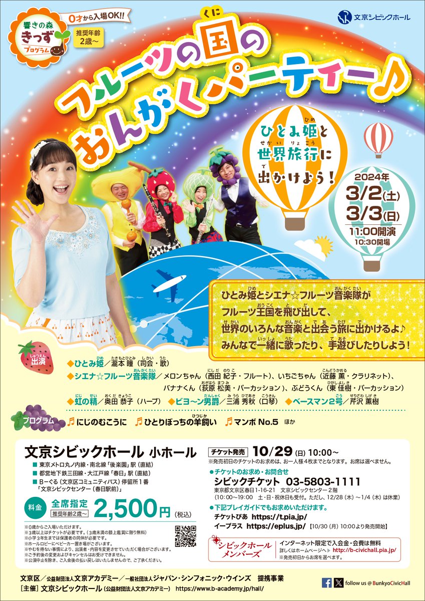 当日券は10:00よりシビックチケット窓口(文京シビックセンター2F)にて販売いたします。