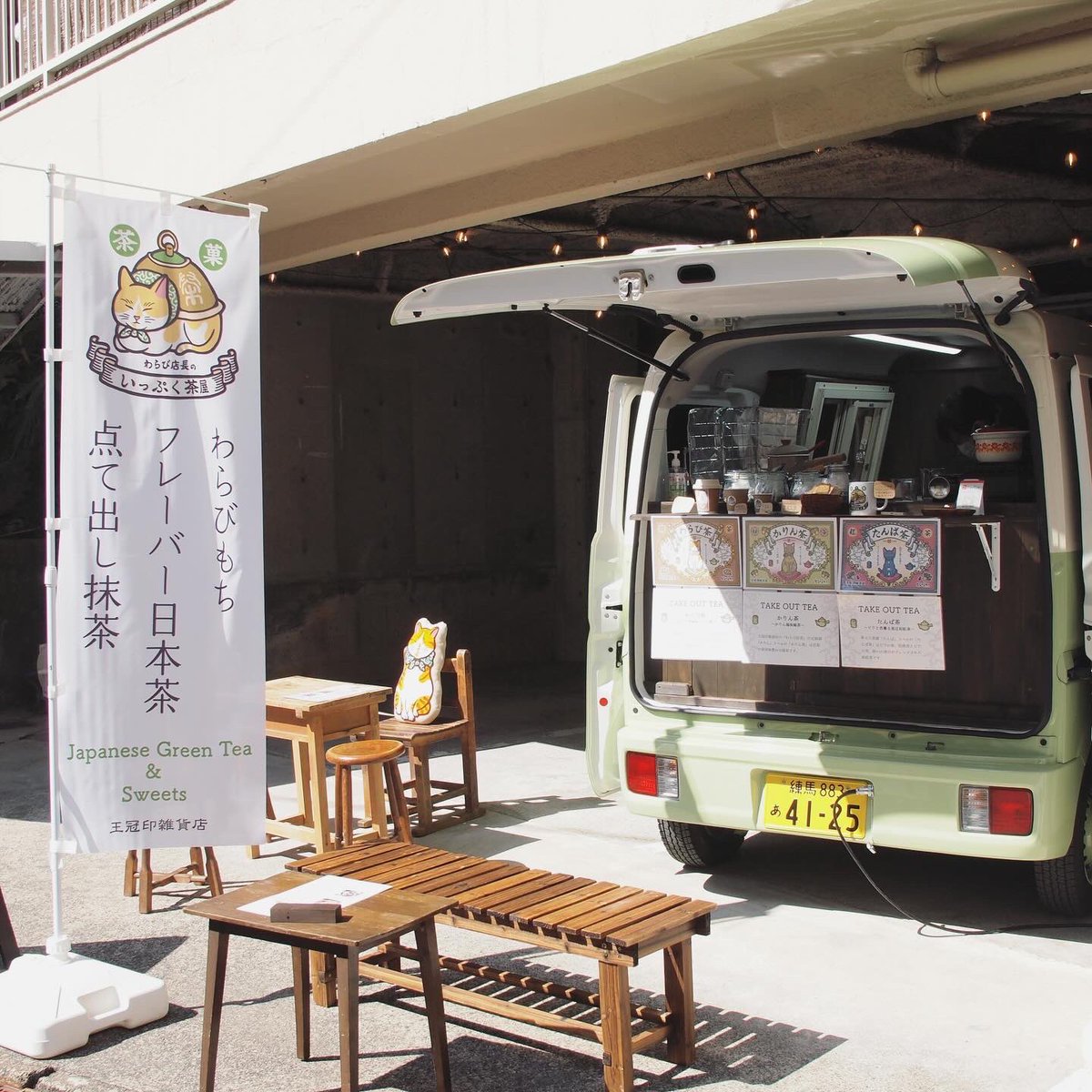 併設の甘味処キッチンカー #わらび店長のいっぷく茶屋 ではこだわりのわらび餅や抹茶をご用意しております🍵