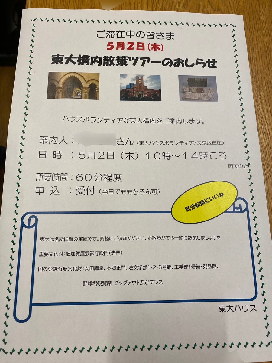 ハウスボランティアさんが、滞在者さま向けに散策ツアー開催してくれました。