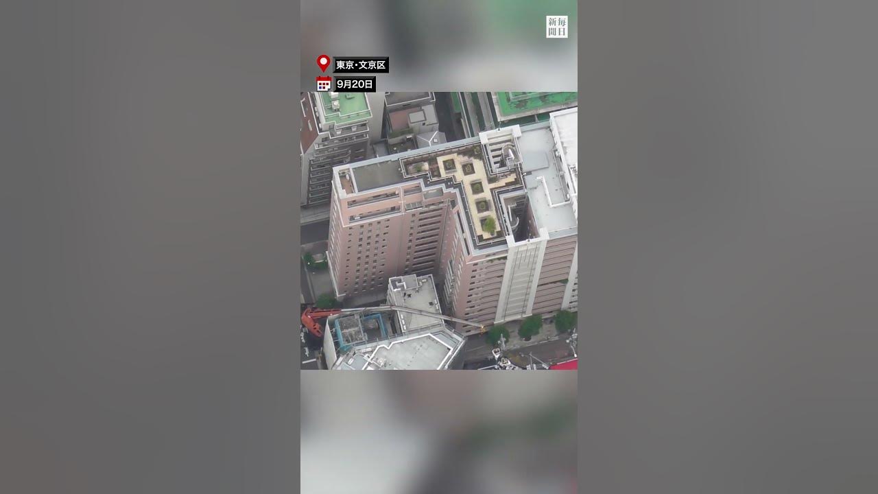 警視庁によると、20日午前8時15分ごろ、東京都文京区小石川1のビルの解体工事現場でクレーン車が横転し付近の電線に接触した。けが人の情報は入っていない。【撮影・本社ヘリから和田大典】2025年9月20..