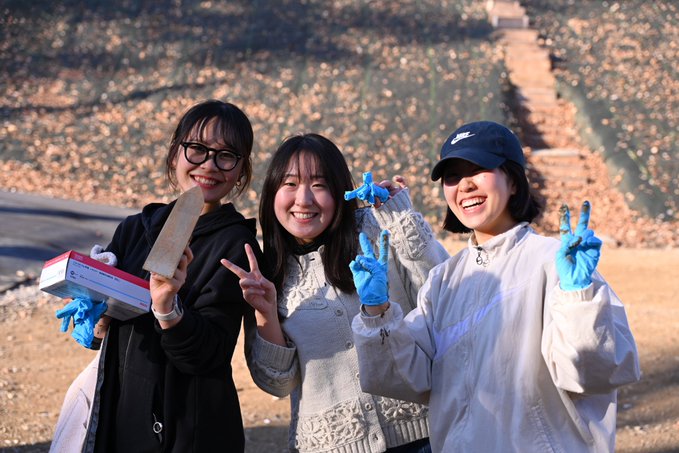 /職人技×学部を超えた学び\京都の左官職人を招き、土壁づくりに挑戦。ひとりの学生の興味から始まった研究が、建築デザイン学部×理学部の協働プロジェクトへ発展。約20名の学生が研究対象の”荒木田土”を使い..