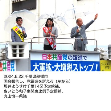 6/23船橋市での街頭宣伝の様子は、#しんぶん赤旗 でも詳しくお伝えしています。 https://x.com/jcpchibahata/status/1805767508781318208?s=46&t=M38hacJ_QeoHZA66l4ddwg… #坂井ようすけ @sakai_yousuke #さいとう和子@saitokazuko 丸山慎一 @maruyama_sin1 「この日の赤旗が欲しい」☞1部売りもあります。日刊紙130円。 お近くの議員・事務所まで。