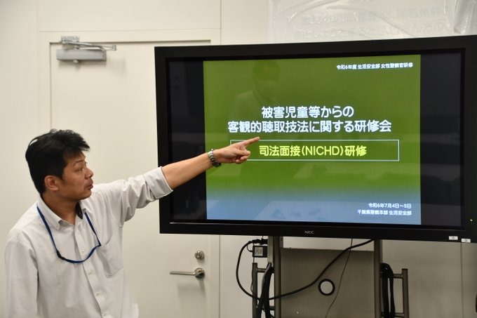 【#司法面接研修】#千葉県警察では、被害児童等からの客観的聴取技法に関する研修会を実施しました。研修会では、座学等により得た知識や技術を活用し、ロールプレイング形式で事件の目撃者役を行った職員に対して..