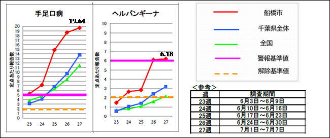 #手足口病が増え続けています感染症発生動向調査で2024年第27週定点当たり報告数は、手足口病が19.64と、依然として増え続けています。ヘルパンギーナの流行も続いており、引き続き注意が必要です。予防..