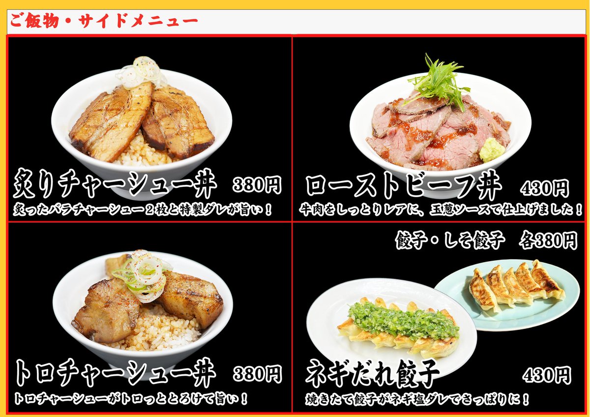 サイドメニュー ラーメン、つけ麺と共にバラエティーに富んだ優勝軒サイドメニューも是非ご賞味下さい 皆様のお越しをスタッフ一同元気と笑顔でお迎えいたします #麺屋こうじグループ #柏優勝軒#柏麺屋こうじ
