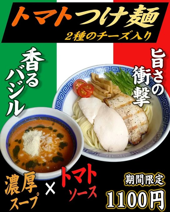 好評販売中トマトつけ麺自家製トマトソースと優勝軒濃厚スープを合わせたオリジナルトマトスープがWチーズと相まってモチモチ食感の麺によく絡みますこの機会に是非ご賞味下さい今後、優勝軒は毎月限定を変えて行き..
