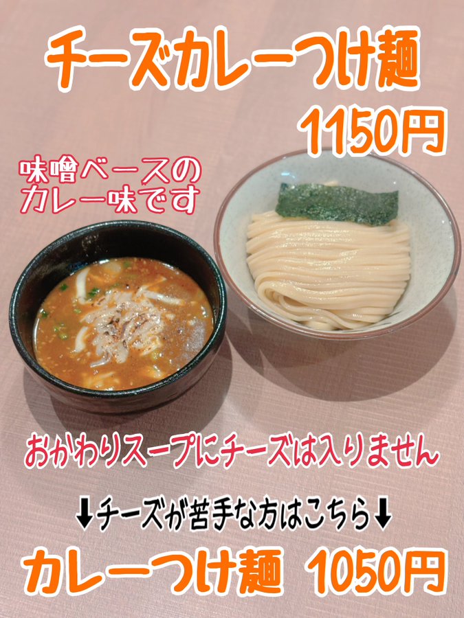 6/10月曜日 カラシビ味噌つけ麺は昨日で終了しました。また来月にやりますので是非! 今日と明日はチーズカレーつけ麺やります。 水曜日からは最後の煮干しつけ。 宜しくお願いします。 今週は水曜日、木曜日中休みありになります
