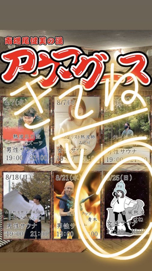 明日8/25は8月ラストアウフ女性高温サウナにてはねさんのアウフグースです!17時と19時お時間お間違えなく!ご来店お待ちしております#健美の湯#南増尾#アウフグース#サ活女子#サウナイキタイ@han..