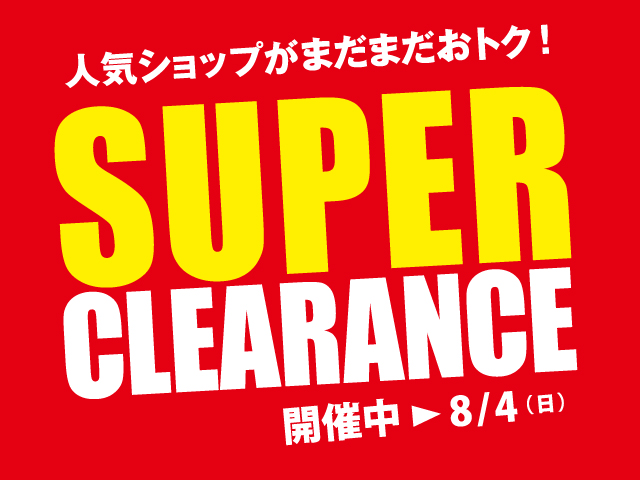 【イベント情報】\人気ショップがまだまだおトク!/S館・新館専門店では、8/4(日)まで「SUPERCLEARANCE」を開催♪これからの季節に活躍するアイテムもプライスダウン!