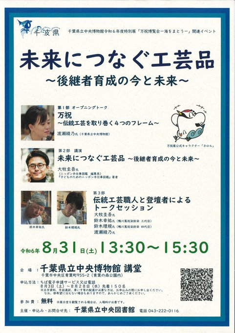 【未来につなぐ工芸品~後継者育成の今と未来~】#ニッポン手仕事図鑑編集長の大牧圭吾氏の講演や鴨川萬祝染#鈴染の職人を交えてのトークセッション。伝統工芸品の魅力や可能性、そして未来について考えます!開催..
