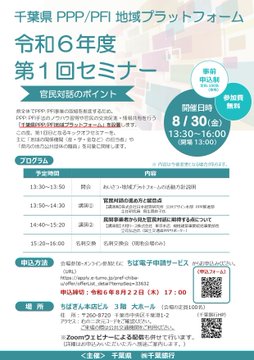 【官民連携を一層進めるために】県全体でPPP/PFI事業を推進するため、ノウハウの習得や官民の交流・情報共有を行う「千葉県PPP・PFI地域プラットフォーム」を設置します。産学金担当者や自治体職員の方..