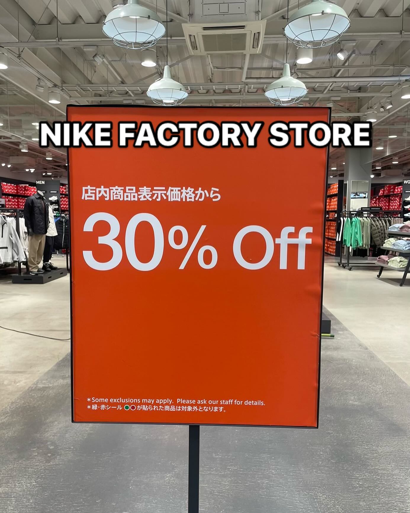 アーバンゾーンNIKEFACTORYSTOREからのお知らせです。NIKEFACTORYSTOREでは店内表示価格から30%OFFになるキャンペーンを実施しおります。欲しいアイテムがゲットできるチャン..