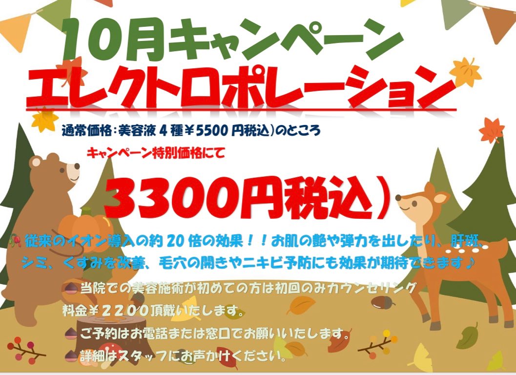 🍁日ごとに涼しくなり秋の気配を感じるようになってきました、皆様いかがお過ごしでしょうか☺️10月の特別キャンペーンは【エレクトロポレーション】になります♪✨