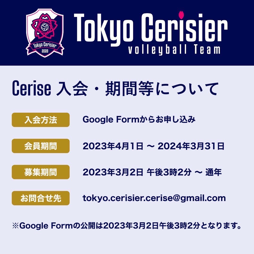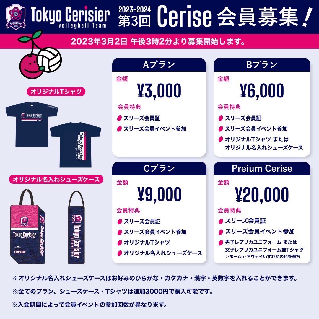 🌸東京スリジエ🌸をサポートする『Cerise』2023/2024シーズン会員募集が、3月2日午後3時2分、いよいよ始まります😉スタッフが練りに練った特典に注目❗️👀今回はオリジナルTシャツとご自分の名前が入るオリジナルシューズケースをご用意❗️皆様の入会と応援を心よりお待ちしております😊