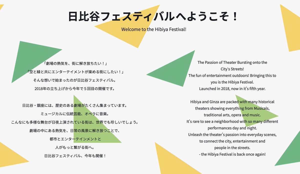今年のHibiya Festivalは、初のナイトショーを加えて、4つのカテゴリーをお楽しみいただけます✨