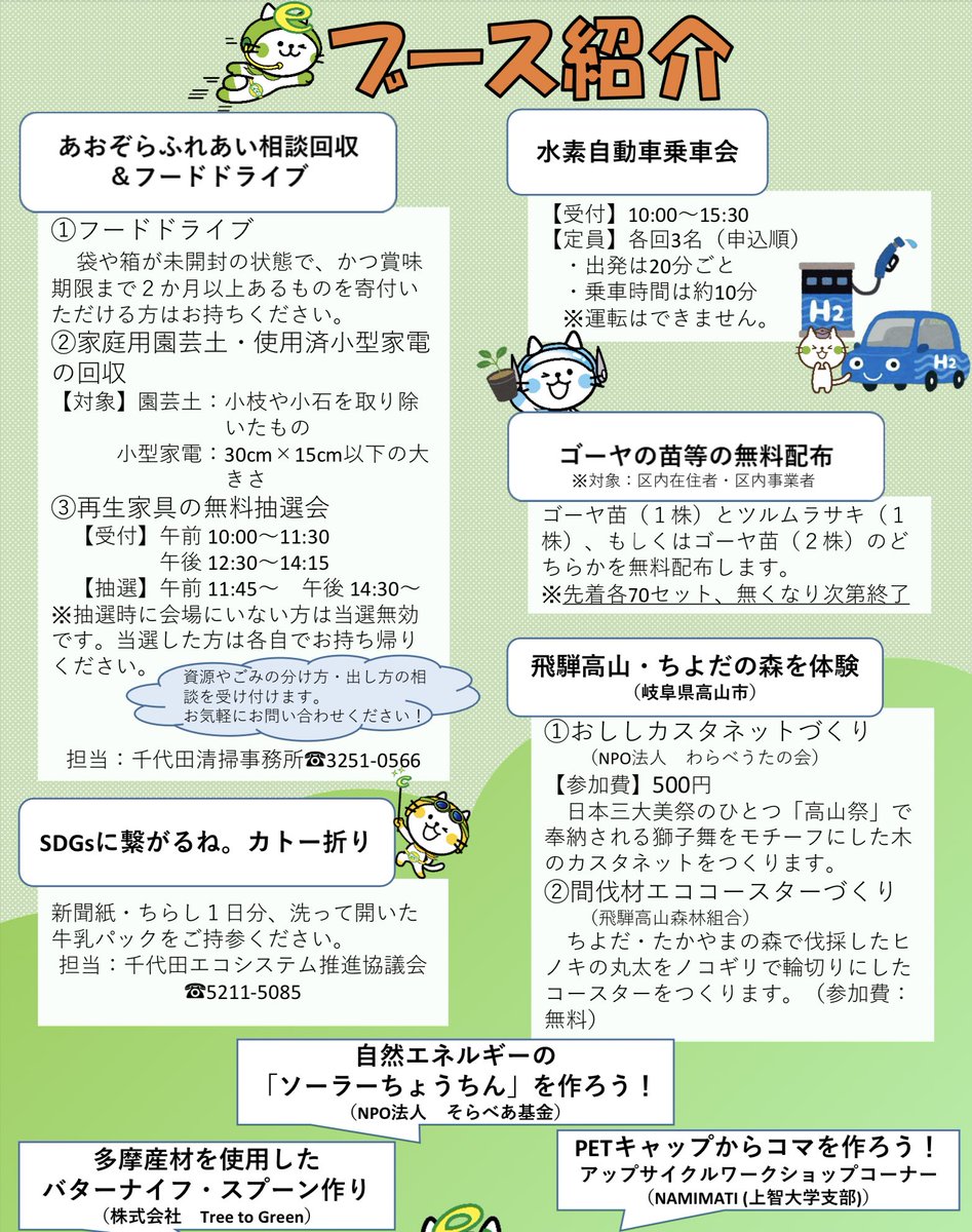 再生家具の無料抽選会や木材を使用したコースターづくりなど環境について学べるブースがたくさんありますので、ぜひ区役所1階区民ホールへお立ち寄りください!