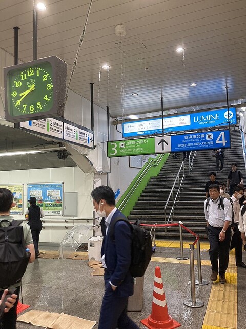 【運行影響なし】「駅の中で雨が降っている」 JR有楽町駅構内が水浸しに