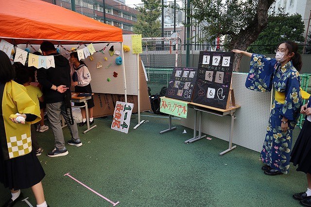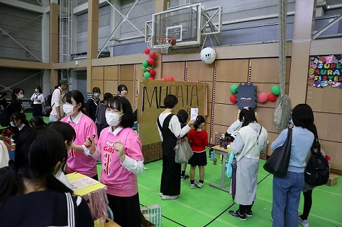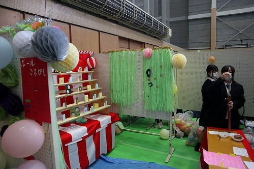 校庭と体育館では縁日が開かれました。射的やヨーヨーすくいなど懐かしい遊びから、自作のオリジナルゲームまで用意され、多くの来場者の方に遊んでいただきました!
