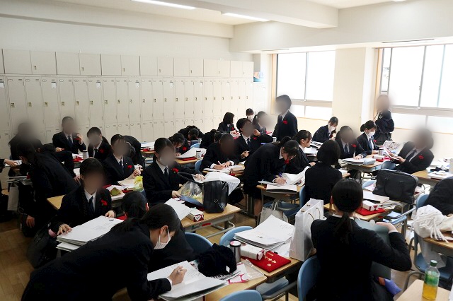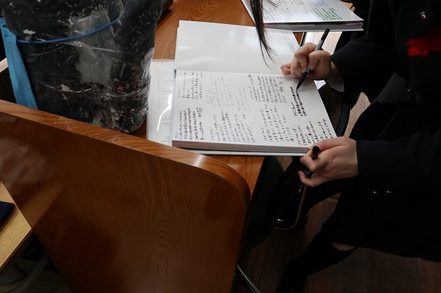 講堂での式典の後はクラスに戻って卒業アルバムへの寄せ書き大会です!