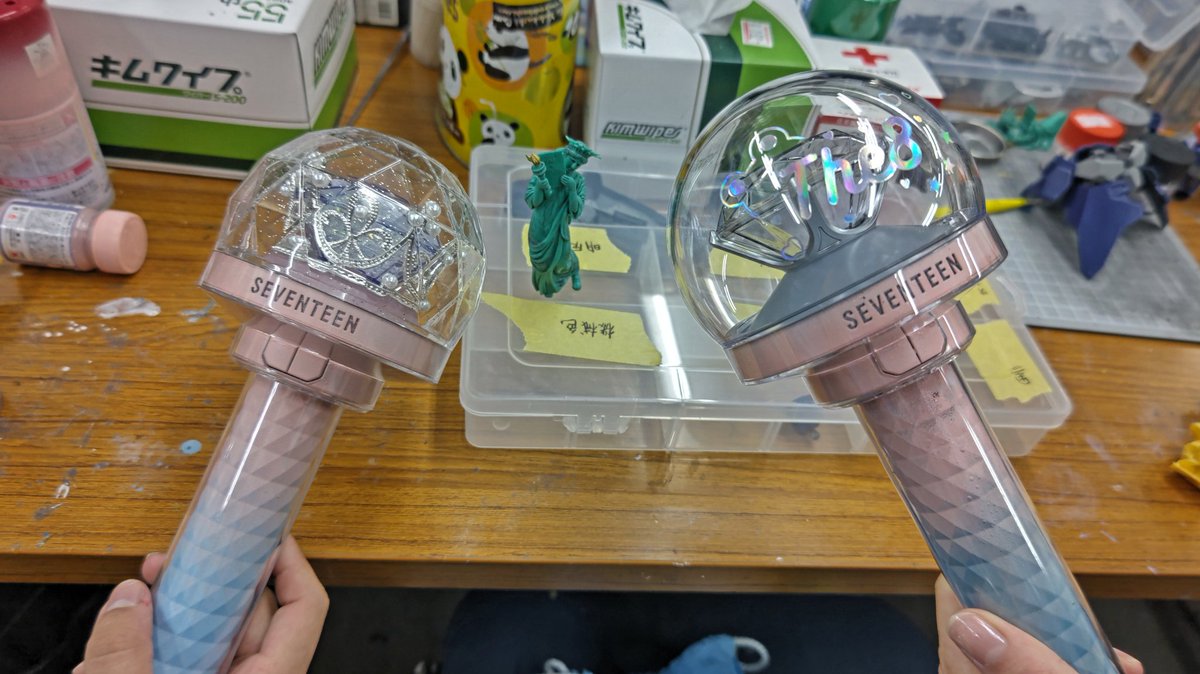 今日は人生初エアブラシ3名ともペンライトの塗装でした