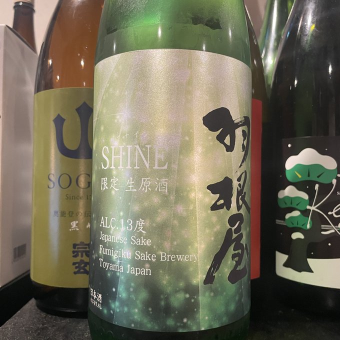 7/5金曜日、本日は18:00より夜営業オープンします! 今回の写真は、富山県の日本酒「羽根屋 shine 13度生原酒」でございます。 低アルコールの日本酒で、爽やかな柑橘類の様な味わいでございます。