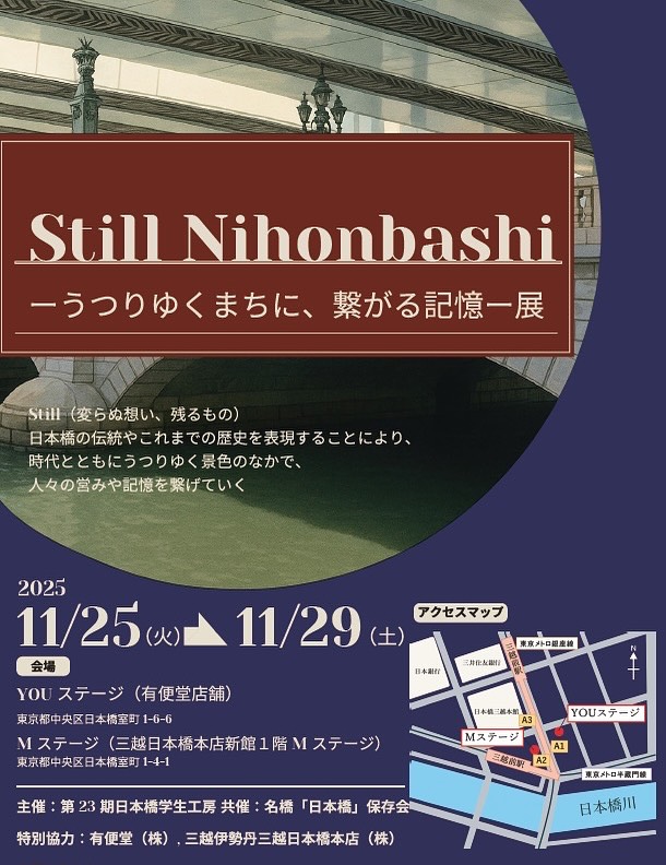 \企画展のお知らせ/「StillNihonbashi─うつりゆくまちに、繋がる記憶─展」Still(変わらぬ想い、残るもの)をテーマに、日本橋のまちが紡いできた歴史を写真で振り返り、人々の営みや記憶を..