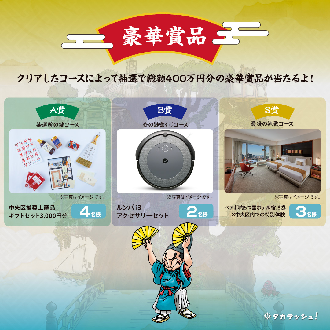 中央区内を舞台にした総額400万円の豪華賞品が当たる謎解き宝さがしゲームを開催中!