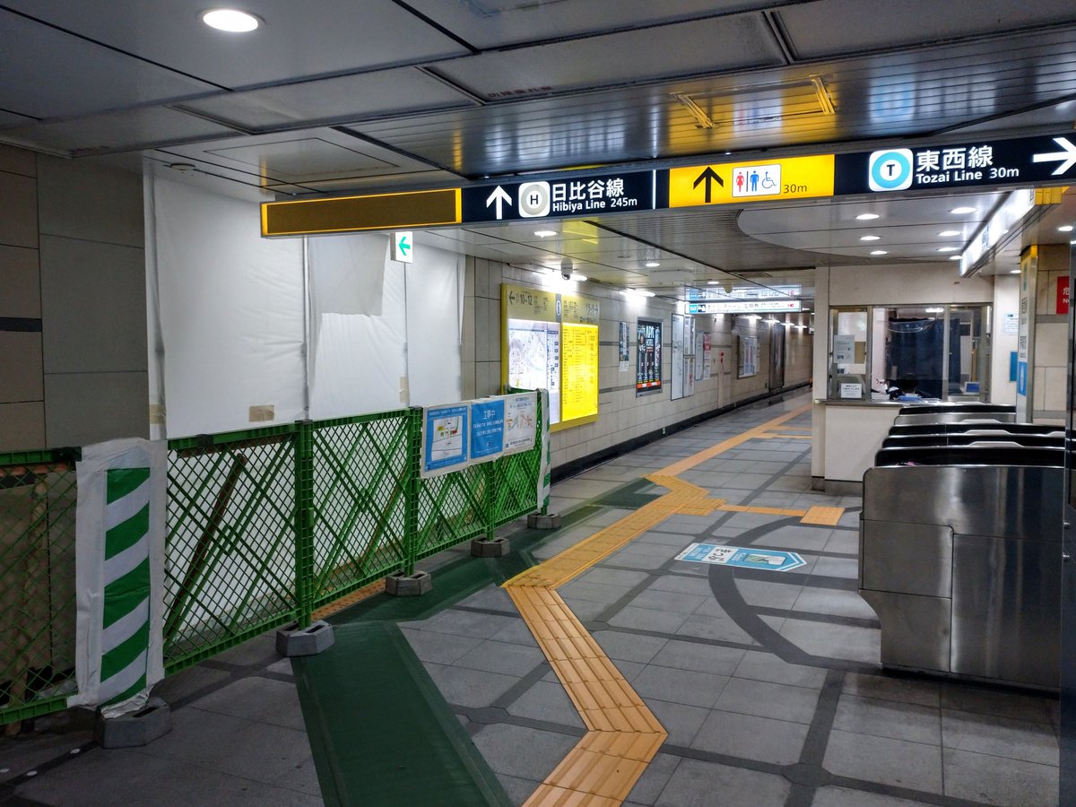 長らく続いた茅場町駅の新出入口工事がようやく完了。東西線ホーム日本橋寄り改札の真ん前で、地上地下の移動が更に快適便利になることでしょう。