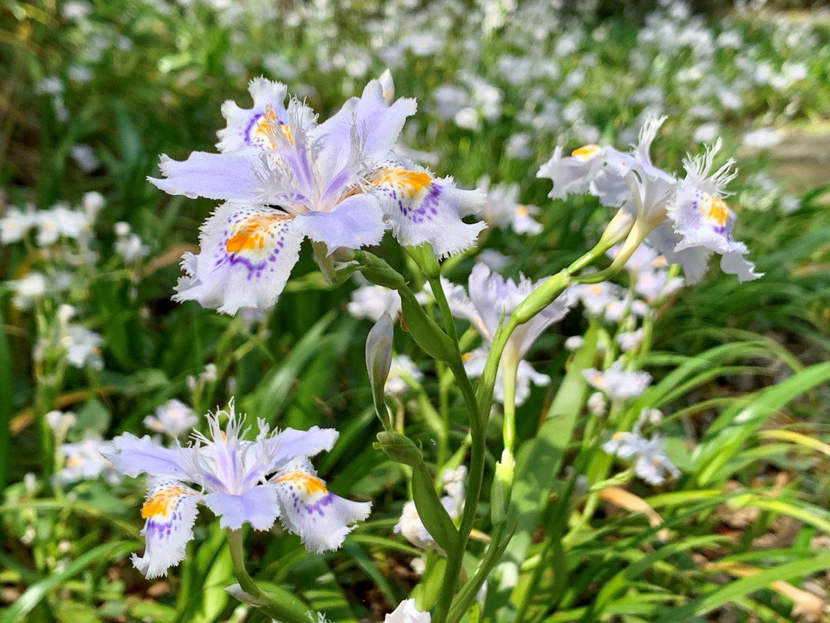You can view these fancy flowers of fringed iris (Iris japonica) on the north side of Shinsen-za Kamoba (Duck Hunting Site).
