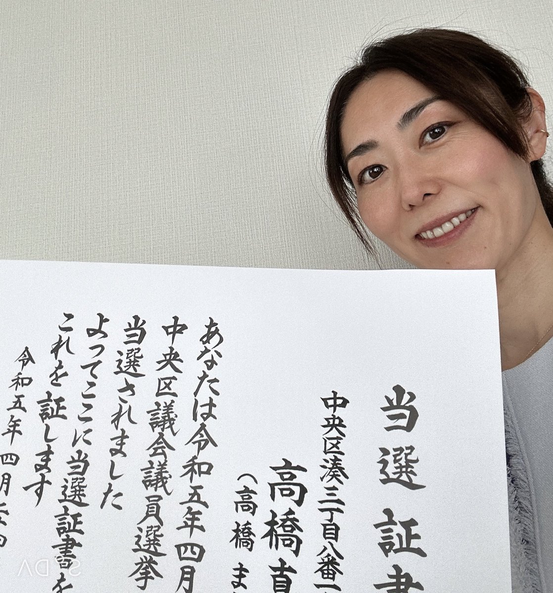 当選証書をいただいてきました 今回から #中央区議会 に集まるスタイルに変わりました。私は選挙事務所もないので、助かりました。 敬意を込めて、当選者のみなさまと挨拶させていただきました。 引き続きよろしくお願いします。 #高橋まきこ #中央区議会議員