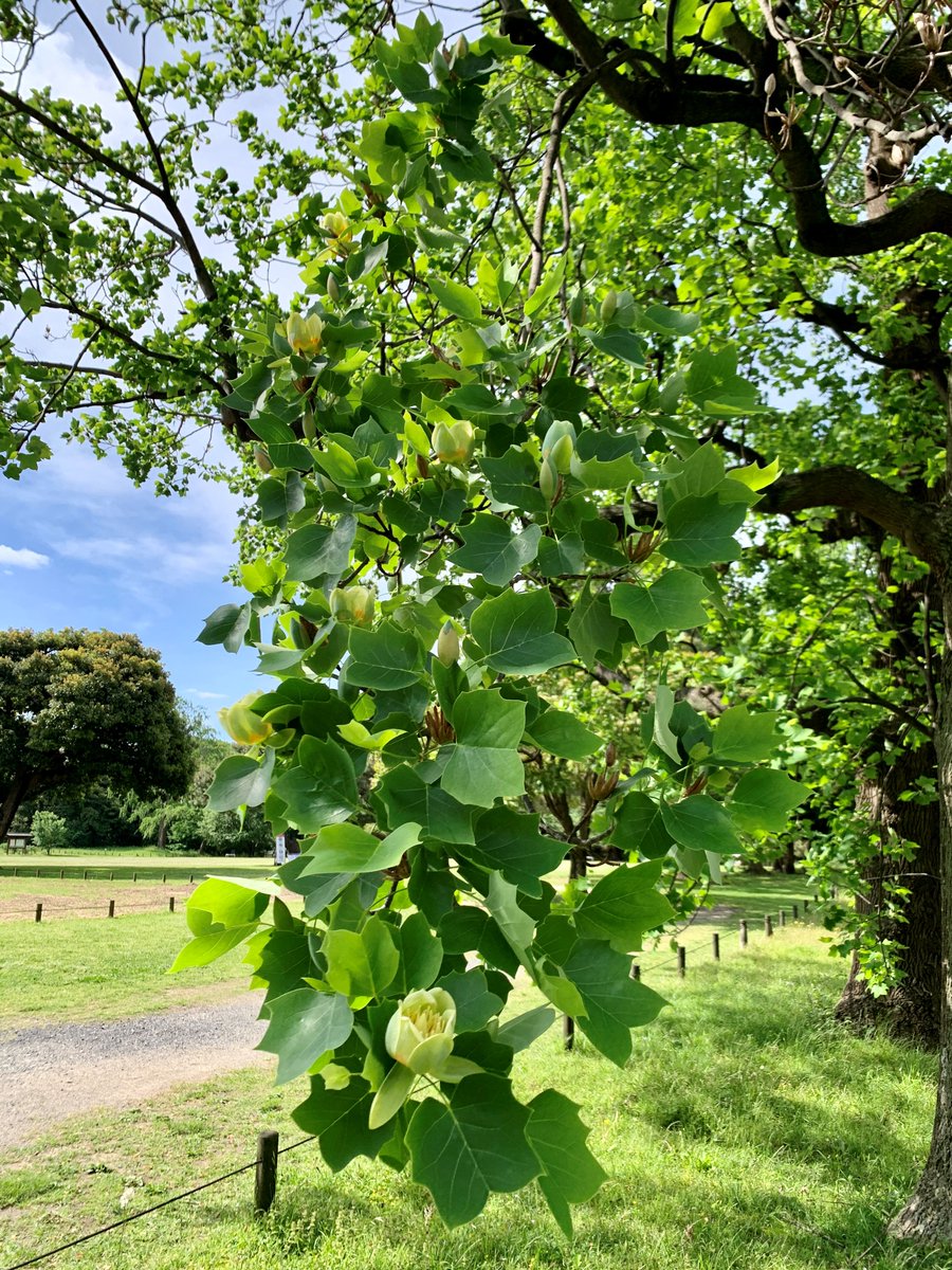 内堀のユリノキが花をつけ始めました!