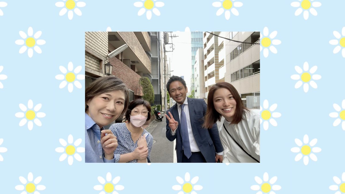 こびりついた粘着テープに苦戦しているとスーツ姿の男性が取ってくださいました。とそこに川崎市選出のなすのあやか議員が登場。お二人は後援会長と議員であることを知りました。